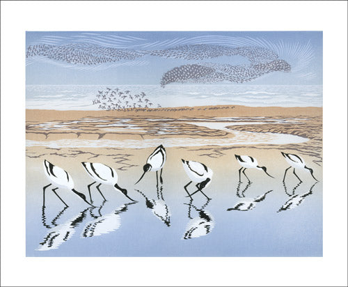 Norfolk born Niki Bowers studied at Canterbury College of Art before becoming a graphic designer. Inspired by Norfolk landscape and wildlife, she cites Sybil Andrews and John Nash among the influences on her distinctive linocuts.