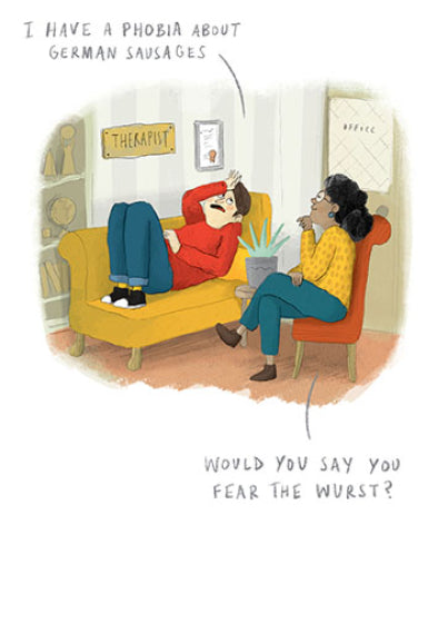- Front reads: I Have a Phobia About German Sausages. Would You Say You fear the Wurst?